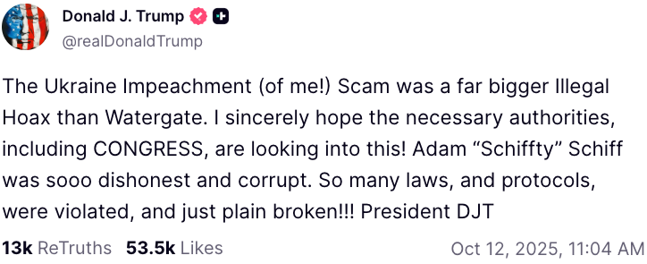 As of this post, Russia is pounding Ukraine’s energy infrastructure ahead of winter and Ukraine’s front lines are collapsing. A full exposure of the actors in Russiagate and the first impeachment –pretty much the same people–has the potential to evaporate any remaining support for continuing the war in the United States. These are disgusting and evil people. I think President Trump wants you to get to know them so that their insanity can be noted and contained.