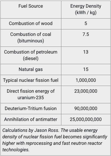 A chart comparing fuel types from the standpoint of LaRouche’s EFD: