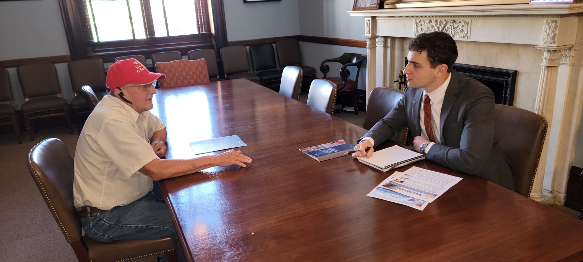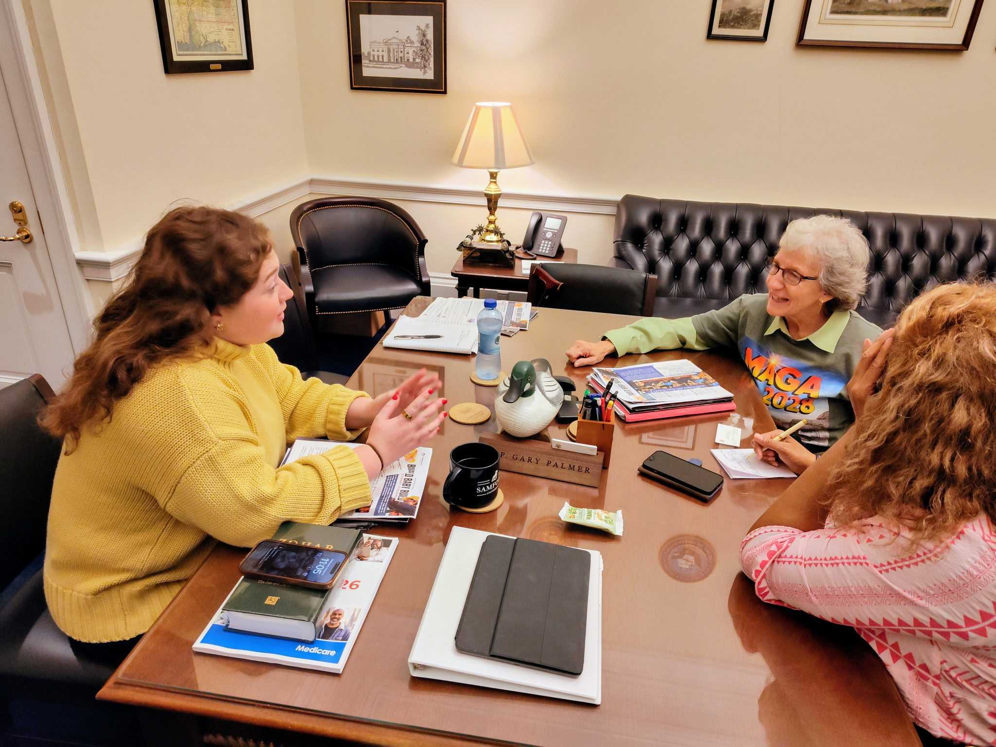 Discussing economics and building the future with an aide to an Alabama Congressman