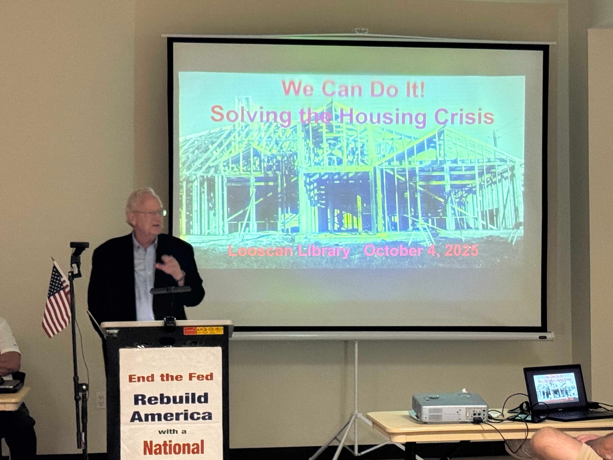Promethean Action held a meeting on October 4 at a local library in Houston, TX. The topic: how America can achieve cheap electricity and affordable housing.