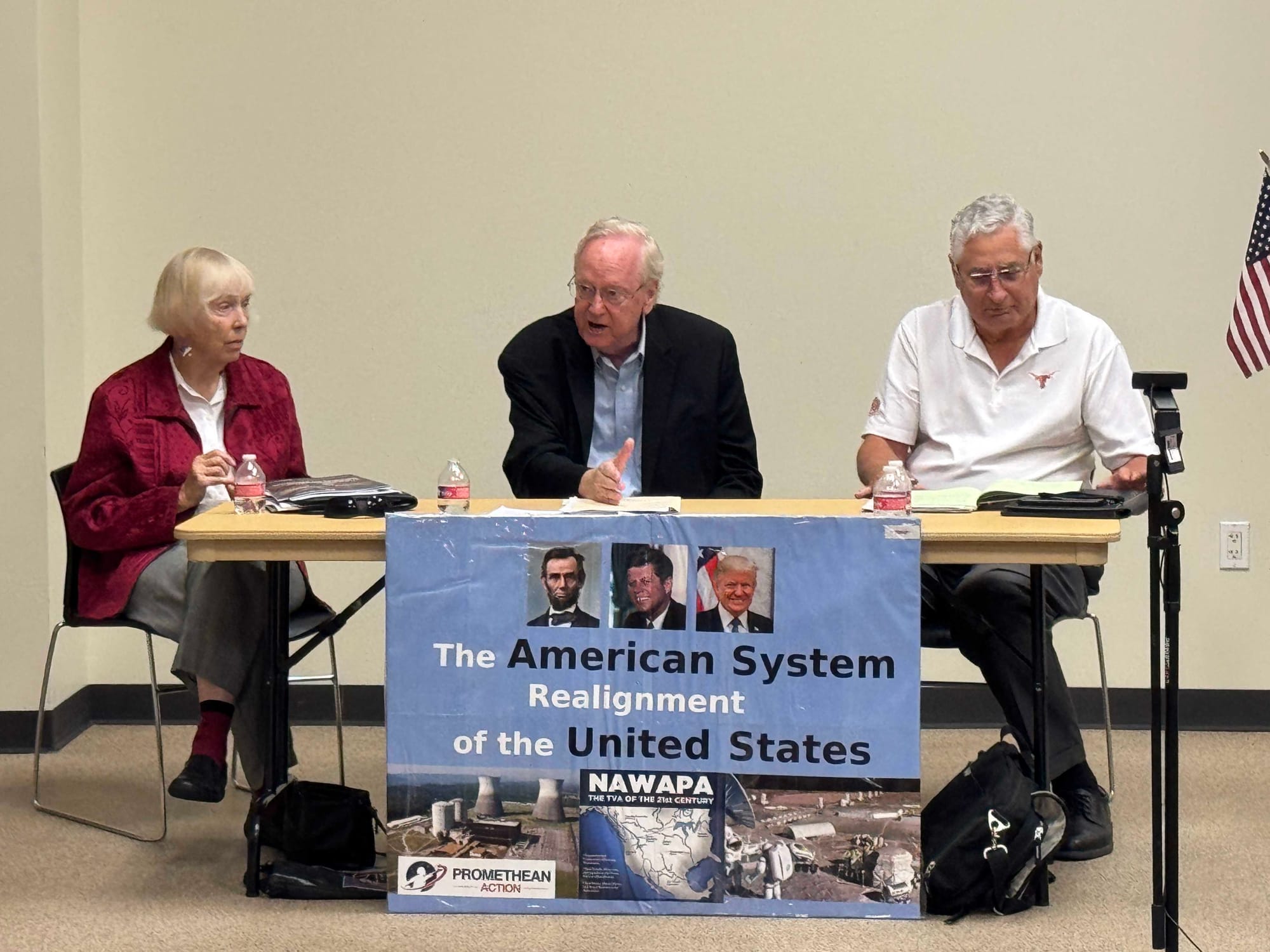Discussion at the meetings centered around the economic ideas of physical economist Lyndon LaRouche, the nation's first Treasury Secretary Alexander Hamilton, and President Trump. The difference between the American System and the British Empire System is that the American credit system is based on creativity, that we are made in the image of God. We used examples of great projects to get this across: the Bering Straits bridge tunnel, the North American Water and Power Alliance (NAWAPA), and many others.