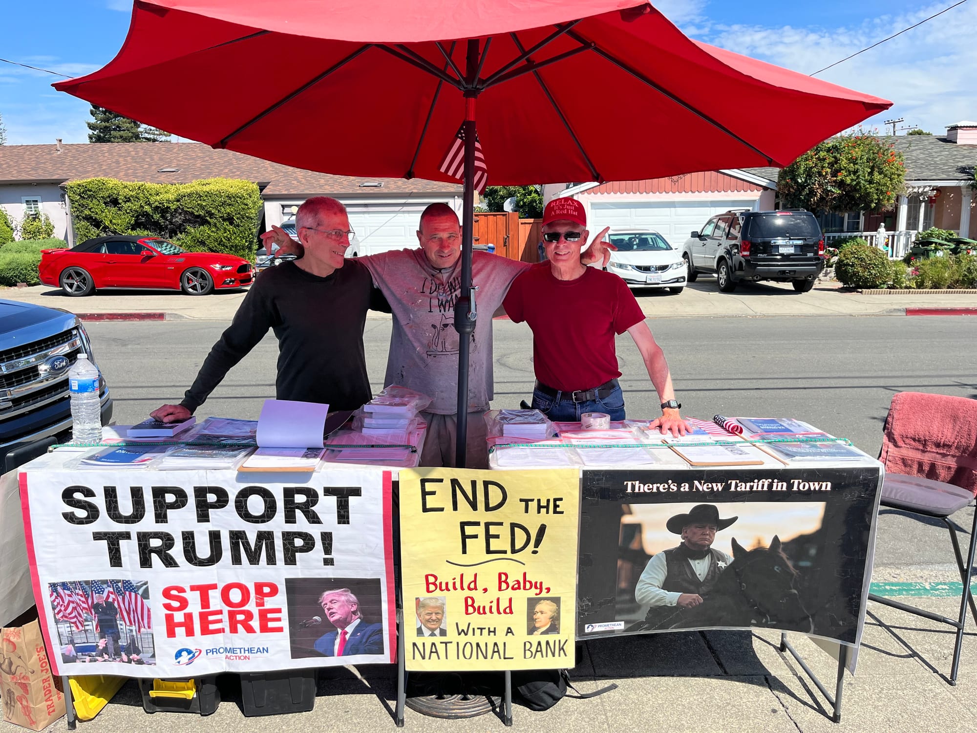 On Friday, August 22, two Promethean organizers displayed the flag and recruited some feisty patriots in Castro Valley, CA. Most people were happy to see us, but there were a few enraged unfortunates.