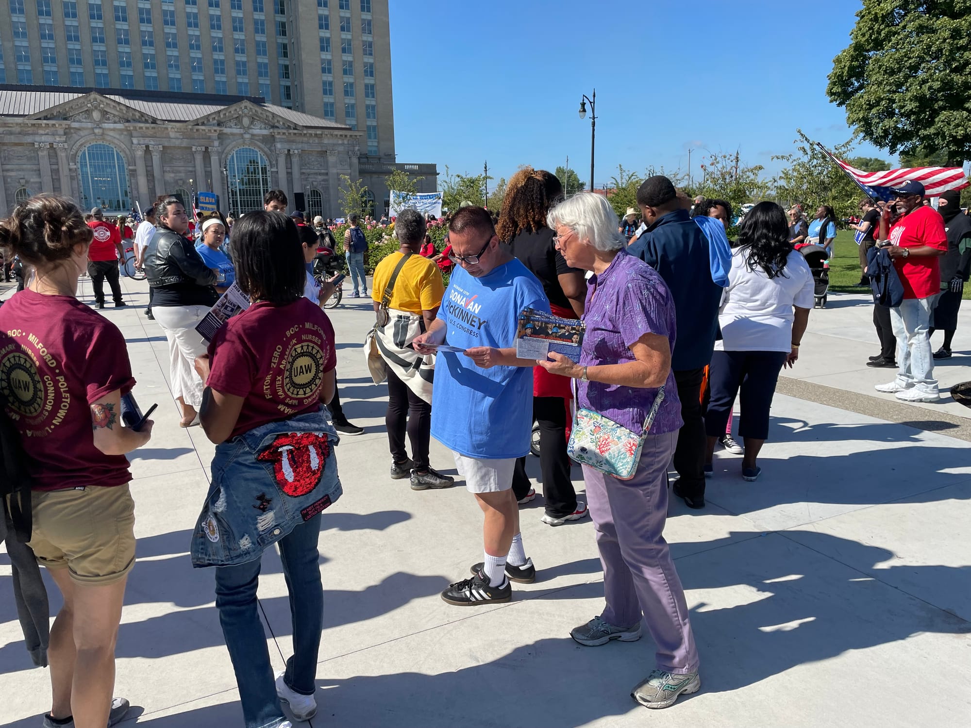 Promethean organizers distributed the "New Republican Party is Rising" flyers on September 1st, at the annual Detroit Labor March. The march concluded with a large rally and speakers next to the famous "Michigan Central" railroad station. We spoke to members of the Teamsters, the UAW, Ironworkers, Steelworkers, Building Trades, and other industrial unions, as well as many others at the parade.