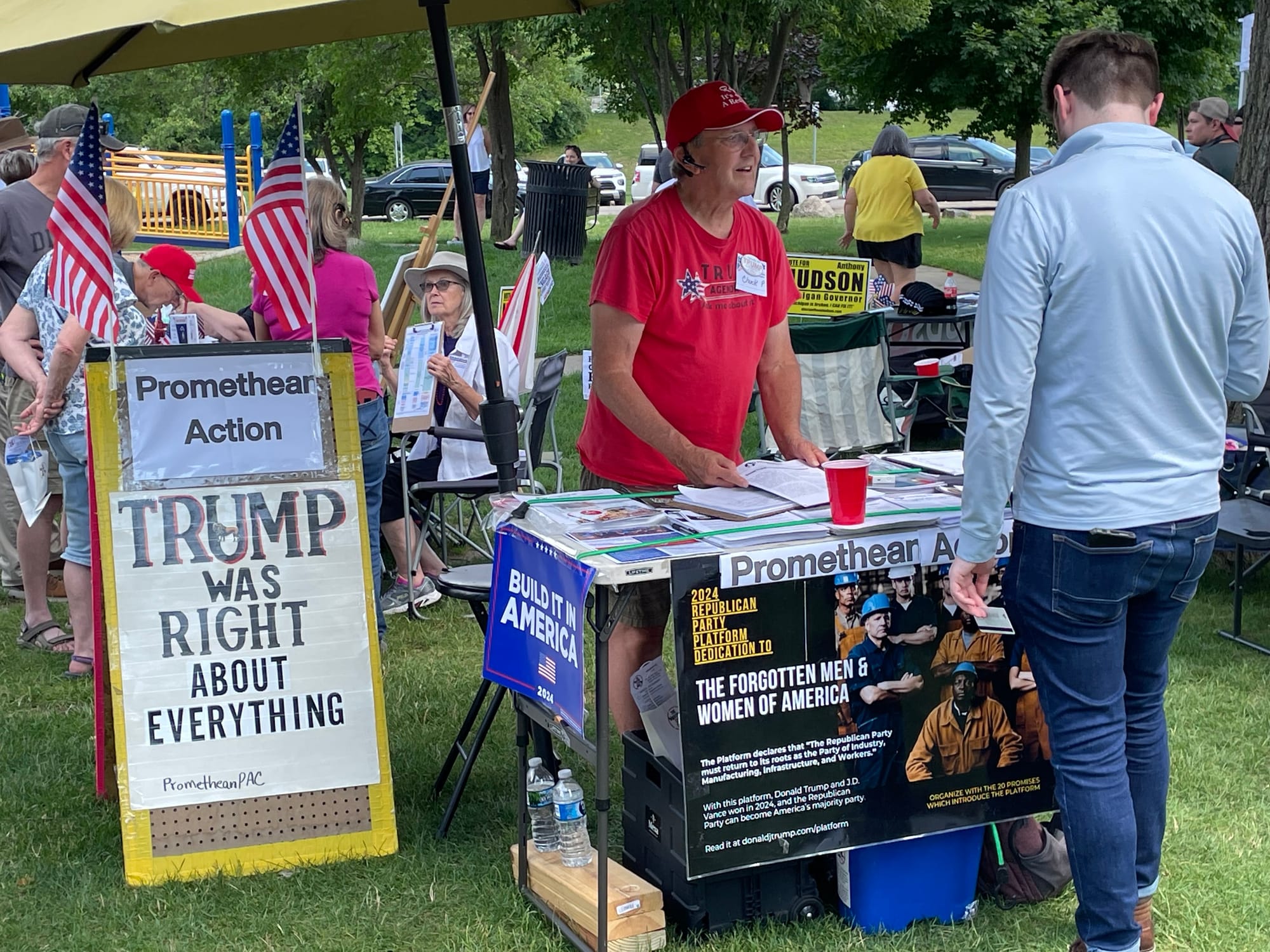 Promethean Action organizers were the center of activity at the Wayne County, Michigan Candidates Grass Roots picnic on June 30.