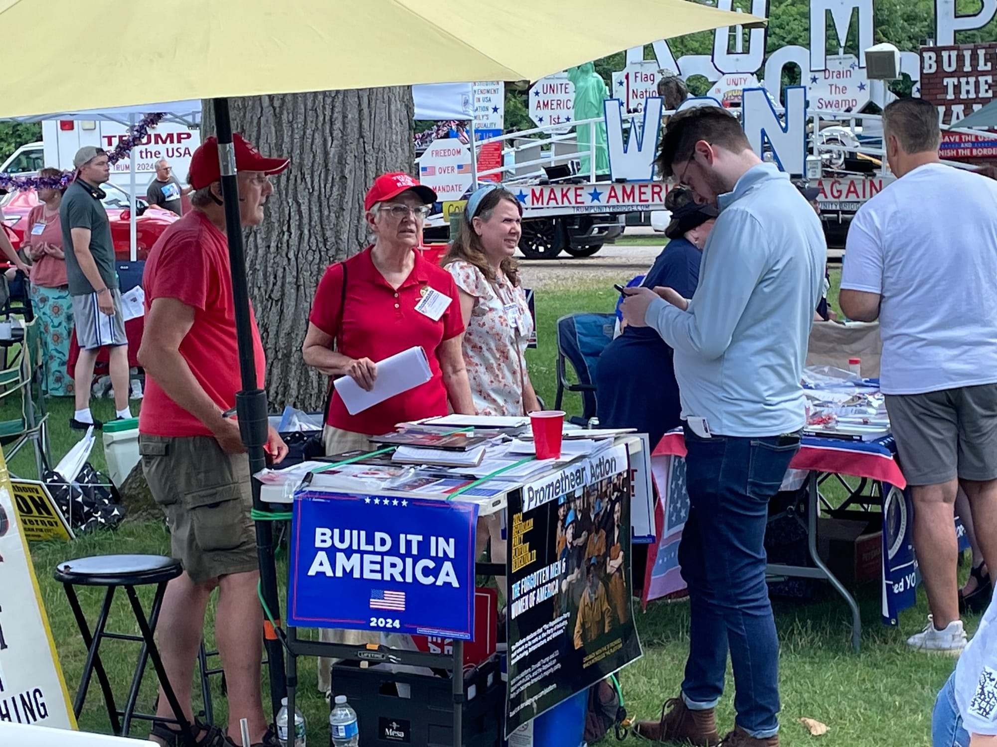 "There are vendors who have Trump merchandise, but if you want to learn about Trump's revolution in economics and foreign policy, go to the Promethean Action table."