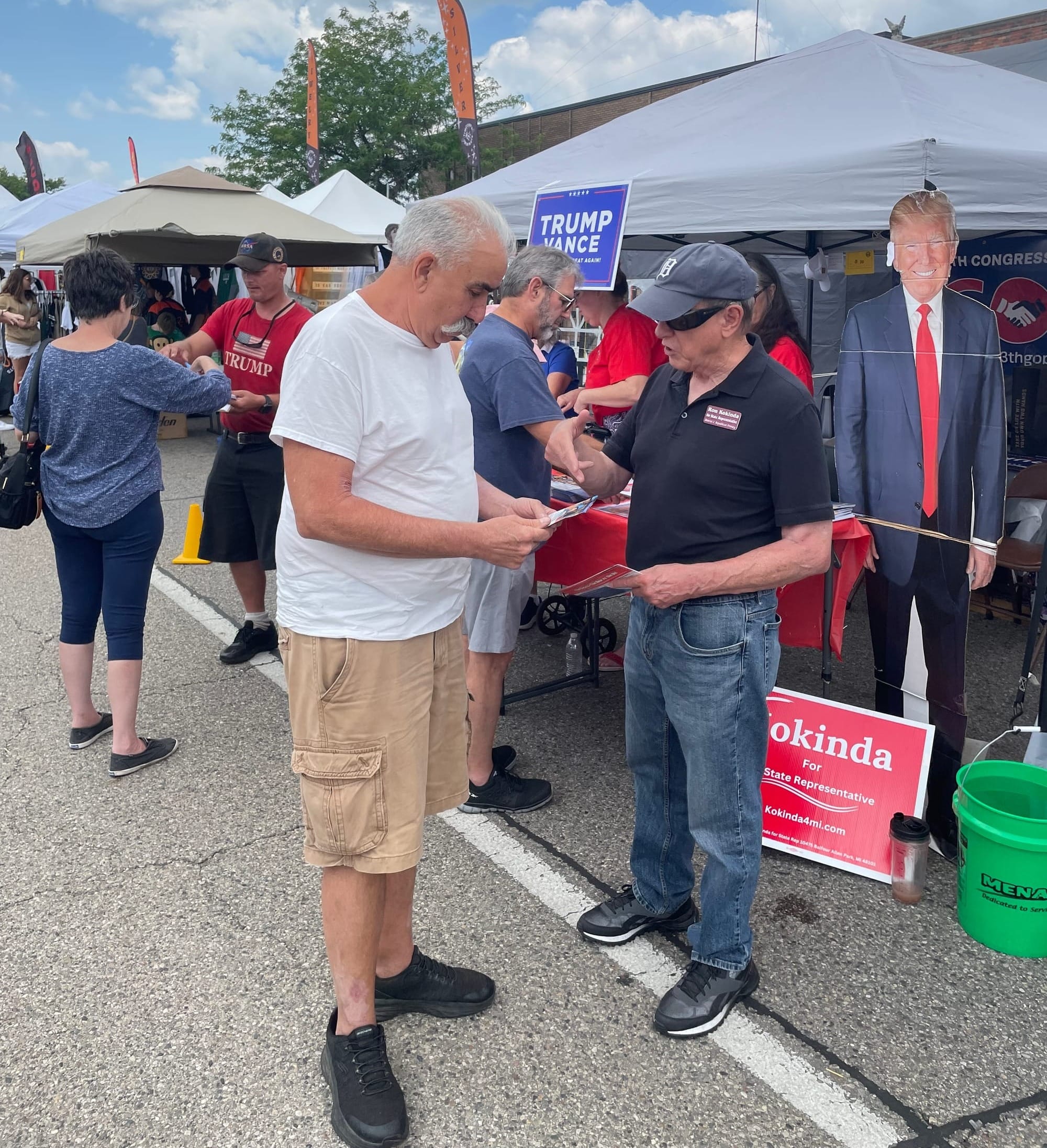 Ron Kokinda at the busy Trump Republican booth in Allen Park