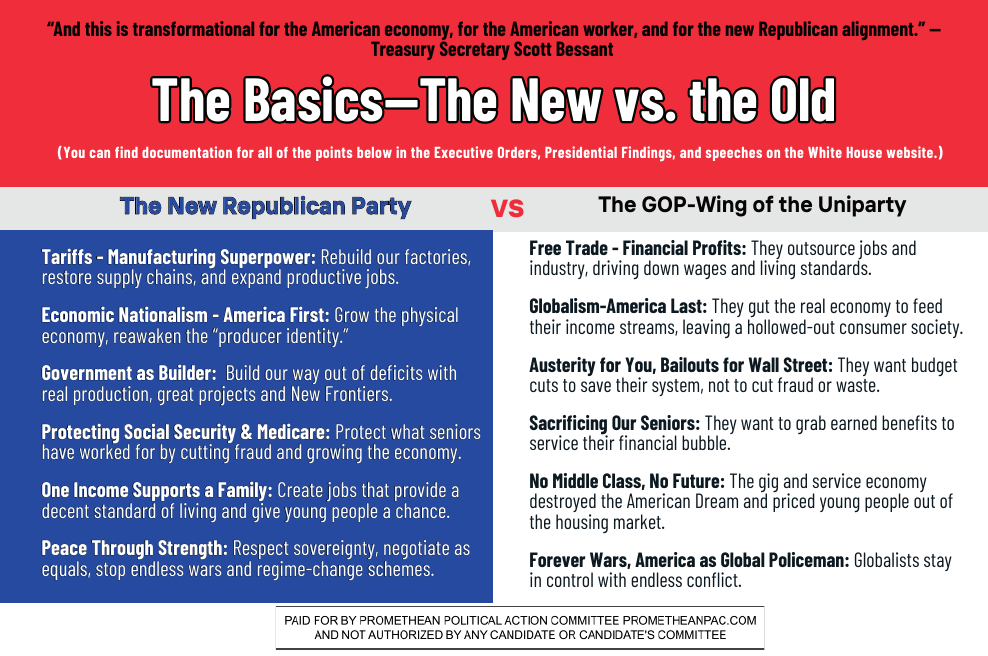 Promethean PAC has produced a new flyer, for distribution nationwide, on the new Republican Party that is taking shape around the policies of President Trump.