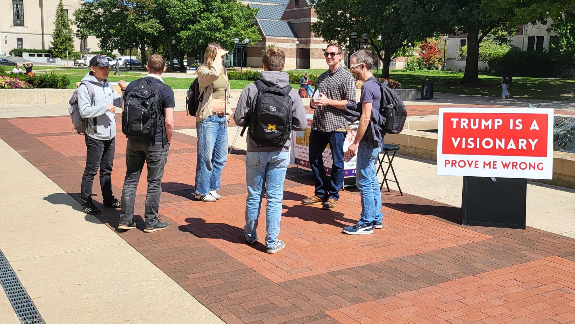 Michael Steger engaging college students on a Michigan college campus.