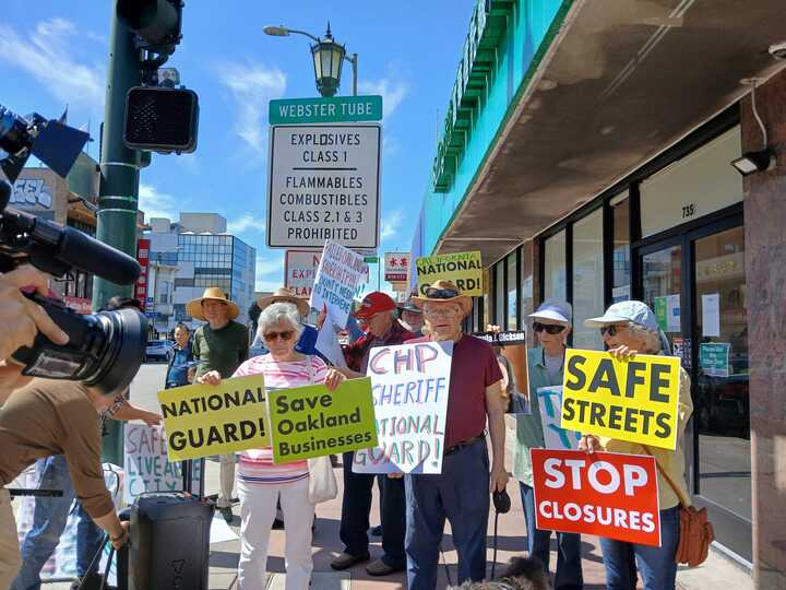 Candidate Mindy Pechenuk (l) rallying citizens to save Oakland from crime