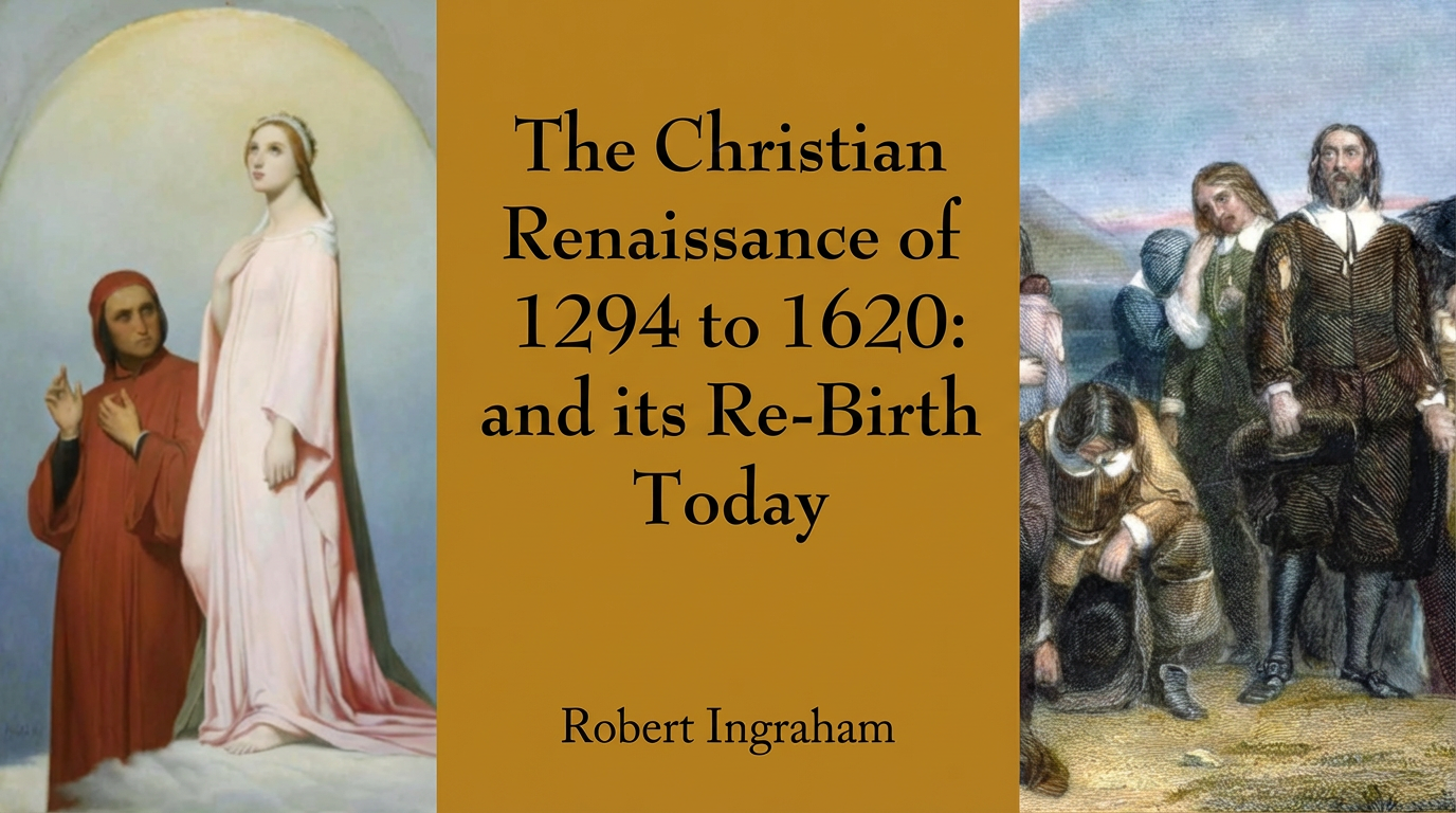 Bob has just published his own deep treatment of this subject — The Christian Renaissance of 1294 to 1620 and Its Rebirth Today. The book takes its dates from Dante’s La Vita Nuova (1294) and the signing of the Mayflower Compact at Plymouth (1620), and traces the Christian thread that runs through both. It is available on Amazon in paperback (color and black-and-white), Kindle, and audiobook.