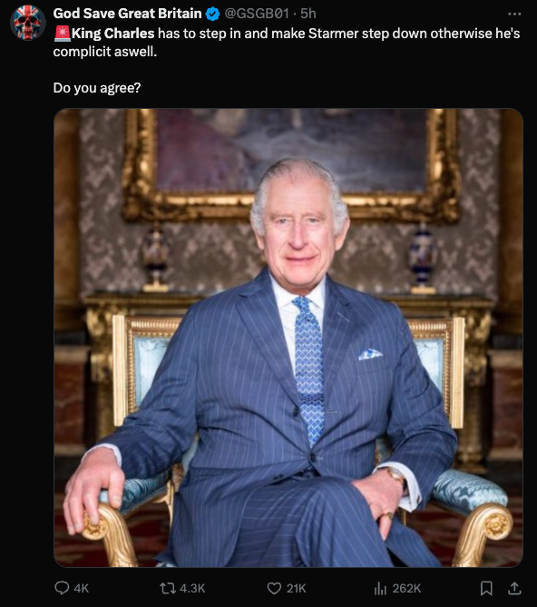King Charles of the U.K., head of state of Canada as the head of the British Commonwealth, is in the hotseat. His priest was a pedophile, his brother is a pedophile, and now his kingdom is in the middle of the biggest immigration and pedophilia scandal in history. Maybe the U.K. should just get rid of Charles, but the U.S. should definitely buy Canada today.